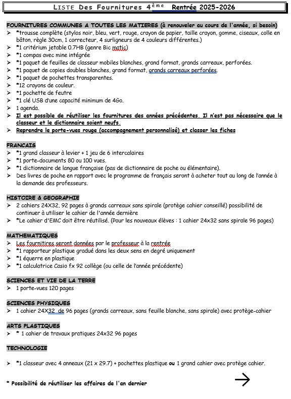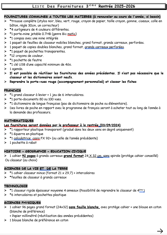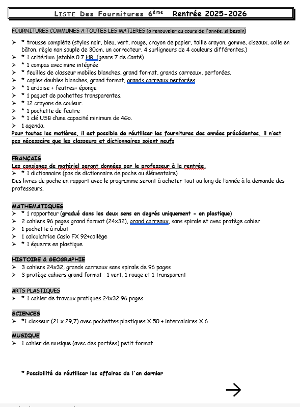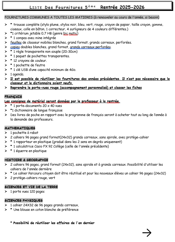 Fournitures scolaires